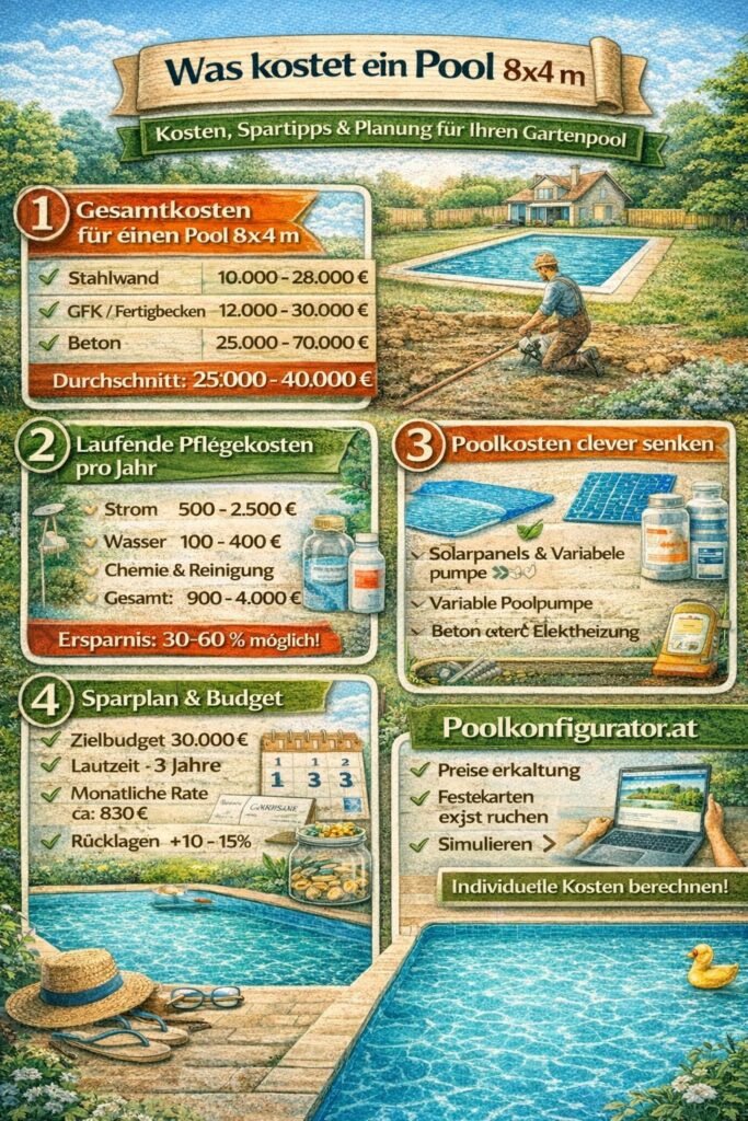 Was kostet ein Pool 8×4 m? Preise, laufende Kosten & realistische Planung